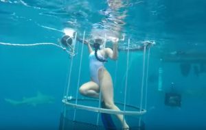 ووفقا للصحيفة تمكنت سمكة القرش المفترسة من عض الممثلة الأمريكية (33 عاما) من قدمها، على الرغم من وجودها داخل قفص الحماية.
