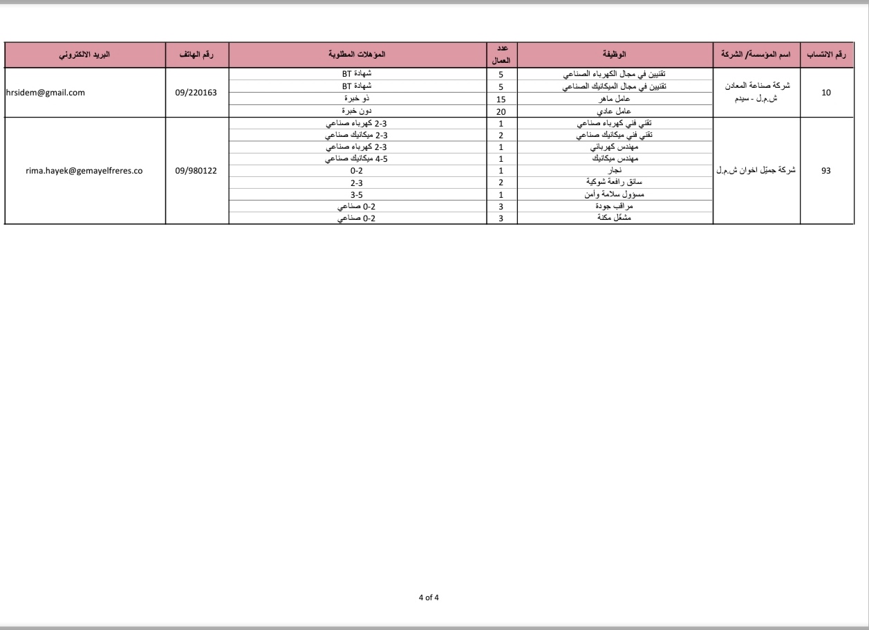 نشرت وزارة الصناعة لائحة تتضمن فرص عمل متاحة في مجالات عدة داخل عدة مصانع، في ظل الأوضاع المتردية وارتفاع البطالة.