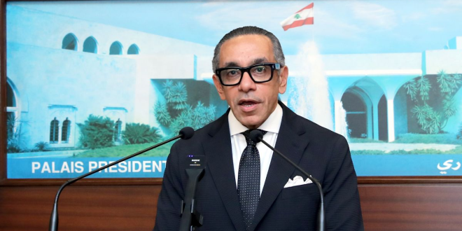 واكد ان”مصر تدعم مواقف رئيس الجمهورية في حصرية السلاح ولطرحه استعداد لبنان للدخول في مفاوضات، وتقف إلى جانب مقاربة الرئيس بشكل كامل وواضح وتمد يد العون في هذا المجال”.