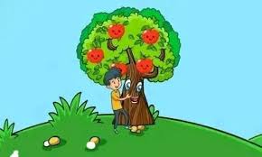 كان هناك شجرة تفاحٍ كبيرة فارعة الأغصان، مُمتلئة الثمر، قويّة الجذع والأغصان، وبجانب الشّجرة كان هناك طفلٌ قريب منها، يلعب ويلهو، ويتسلّق على أغصانها، ويأكل من ثمارها، وإذا تعب من اللّعب نام تحتها مستظلاً بظلالها وأغصانها الكبيرة، وكان هذا بشكلٍ يومي.