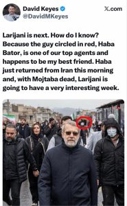 أثارت تغريدة نشرها ديفيد كيز، المتحدث السابق باسم رئيس الوزراء الإسرائيلي، قبل ثلاثة أيام فقط، موجة واسعة من الجدل والتساؤلات، وذلك عقب إعلان اغتيال المسؤول الإيراني البارز علي لاريجاني اليوم.