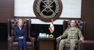 استقبل قائد الجيش العماد رودولف هيكل في مكتبه في اليرزة، المنسقة الخاصة للأمم المتحدة في لبنان Jeanine Hennis – Plasschaert، وتناول البحث الأوضاع العامة في لبنان والمنطقة.