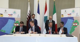 وقع تحالف”توتال” و”قطر للطاقة” و”اني” الإيطالية ، برعاية وحضور رئيس مجلس الوزراء الدكتور نواف سلام، اتفاق التنقيب عن الغاز في “البلوك 8″ مع لبنان، في حفل أقيم قبل ظهر اليوم في السرايا الحكومية. وقع عن الجانب اللبناني وزير الطاقة والمياه جو صدي، وعن شركة ” توتال انرجيز” مدير توتال لبنان رومان دولامارفينيار، وعن شركة “قطر للطاقة” رئيس التنقيب في الشركة …